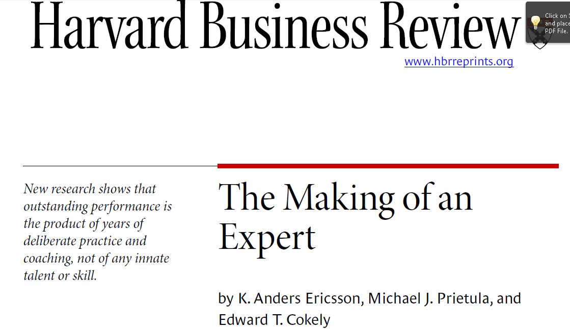 Colvin’s premise is based on K. Anders Ericsson’s classic Harvard Business Review article, “The Making of an Expert“, which outlines three contributors to superior performance across disciplines: